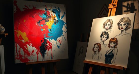 You might find it fascinating that the oldest known cave paintings are around 40,000 years old, showcasing prehistoric symbolism. These ancient artworks reveal early humans’ artistic techniques, using natural pigments and simple tools to create images of animals and abstract designs. Studying these paintings helps you understand how early humans expressed their beliefs and environment, offering a glimpse into their complex culture and the evolution of artistic skills over millennia.