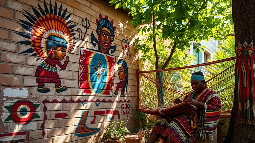 Indigenous art revival is a powerful way to reclaim cultural identities and challenge colonial narratives. By using traditional techniques like beadwork, carving, and weaving, Indigenous communities preserve their heritage and tell authentic stories. This movement resists cultural erasure and offers a form of decolonization that centers Indigenous voices. As you explore further, you’ll discover how these artistic efforts continue to sustain traditions and reshape societal understanding of Indigenous histories and resilience.