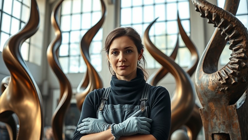 Women sculptors are breaking new ground by challenging traditional boundaries and redefining the art form. You might notice how they’re reshaping gender representation within the sculptural landscape, creating works that confront stereotypes and elevate women’s voices. These artists refuse to be confined by the historical dominance of male figures in sculpture, instead carving out space for diverse perspectives and experiences. Their presence is shifting perceptions, demonstrating that gender shouldn’t limit artistic expression or recognition. As a result, the art world is gradually evolving to become more inclusive, allowing for a broader range of narratives to emerge through sculpture. Additionally, many are incorporating themes of resilience and social change, reflecting broader cultural conversations. At the same time, contemporary women sculptors are pioneering material innovation, pushing the boundaries of what sculptures can be made from and how they’re constructed. They experiment with unconventional materials, blending traditional mediums like stone and bronze with modern substances such as resin, recycled objects, or organic materials. This willingness to innovate is not just about aesthetics but also about challenging the very notions of permanence and durability traditionally associated with sculpture. By embracing new materials, these artists open up fresh possibilities for texture, form, and conceptual depth, making their work stand out in a crowded art scene. Their innovative use of materials often symbolizes themes of transformation, sustainability, and resilience, resonating deeply with contemporary audiences. You’ll find that these women sculptors aren’t just following trends—they’re setting them. Their work often combines material innovation with powerful commentary on social issues, creating pieces that are as provocative as they are visually striking. Many incorporate mixed media or interactive elements that invite viewers to engage directly with the piece, breaking down the barrier between art and audience. This approach not only democratizes sculpture but also emphasizes the importance of diverse voices in shaping cultural conversations. Their ability to blend technical mastery with social consciousness elevates their work beyond traditional sculpture, making it relevant and urgent in today’s discourse. The integration of new materials also allows for greater exploration of themes like sustainability and environmental consciousness, adding another layer of meaning to their work. In essence, these women are redefining what sculpture can be, both in terms of content and form. They challenge the status quo by addressing gender representation head-on and pushing the limits of material innovation. Their contributions are reshaping the art world’s understanding of sculpture, inspiring future generations to think beyond conventional boundaries. By doing so, they ensure that the evolution of sculpture remains dynamic, inclusive, and reflective of the diverse society we live in.