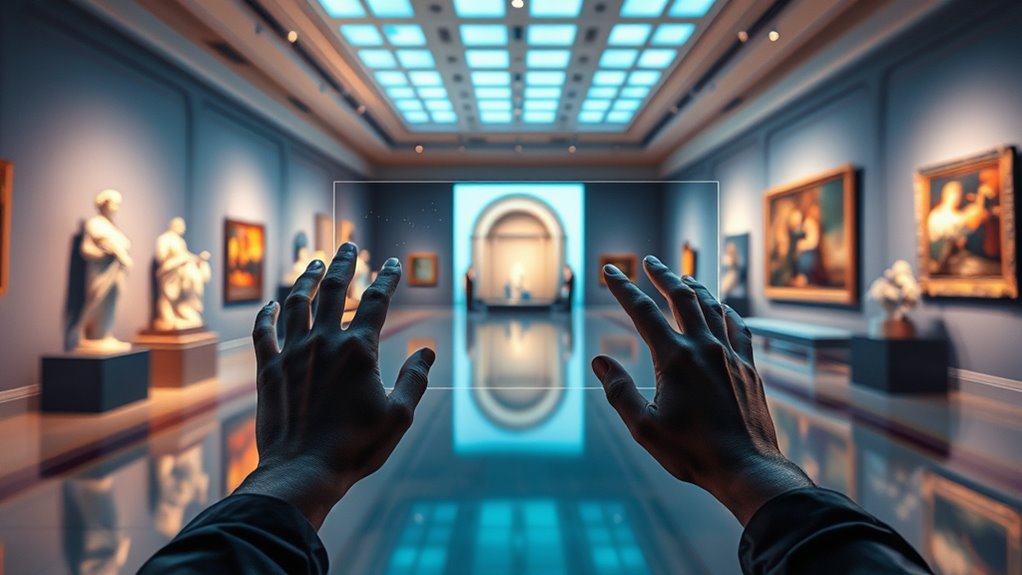 Virtual museums also serve an essential role in historic preservation. By digitizing collections and creating detailed virtual tours, institutions can protect fragile artifacts from damage caused by frequent handling or environmental factors. This digital preservation ensures that priceless items are accessible to a global audience without risking their physical integrity. Plus, virtual platforms often include detailed information, high-resolution images, and multimedia content that enrich your understanding of each piece’s history and cultural importance. This approach not only preserves the artifacts but makes their stories more accessible and engaging for everyone, regardless of location or physical ability. Additionally, digital preservation helps ensure that future generations can continue to appreciate and learn from these cultural treasures.