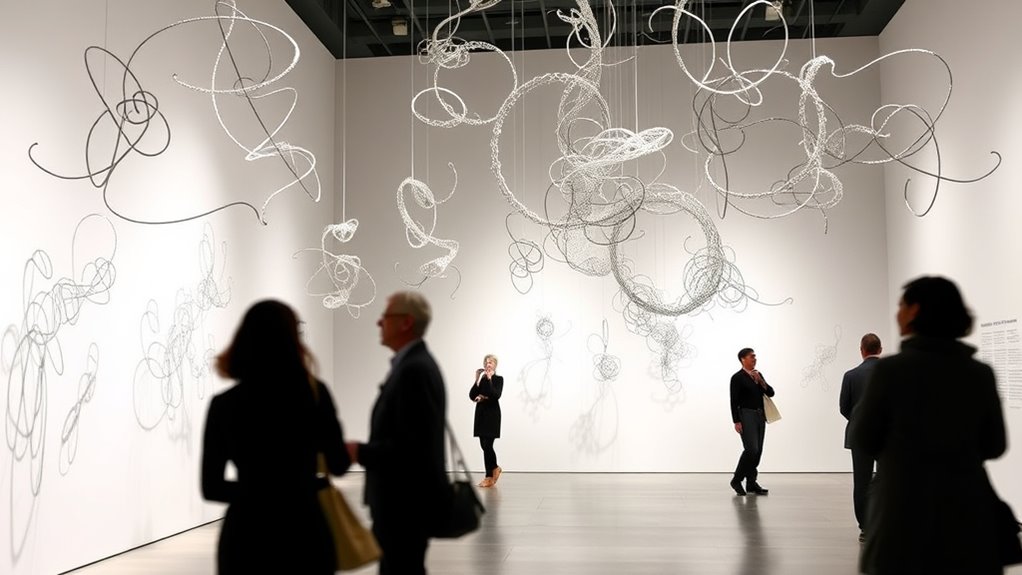 A Ruth Asawa retrospective across major museums showcases her innovative blend of public art, intricate ceramic techniques, and strong community focus. You’ll see her sculptures transform everyday spaces into tactile, immersive environments that invite participation and connection. Her work bridges craft and fine art while fostering social unity. As you explore, you’ll discover how her legacy continues to inspire artists and public spaces alike. Keep exploring to uncover the full impact behind her visionary creations.