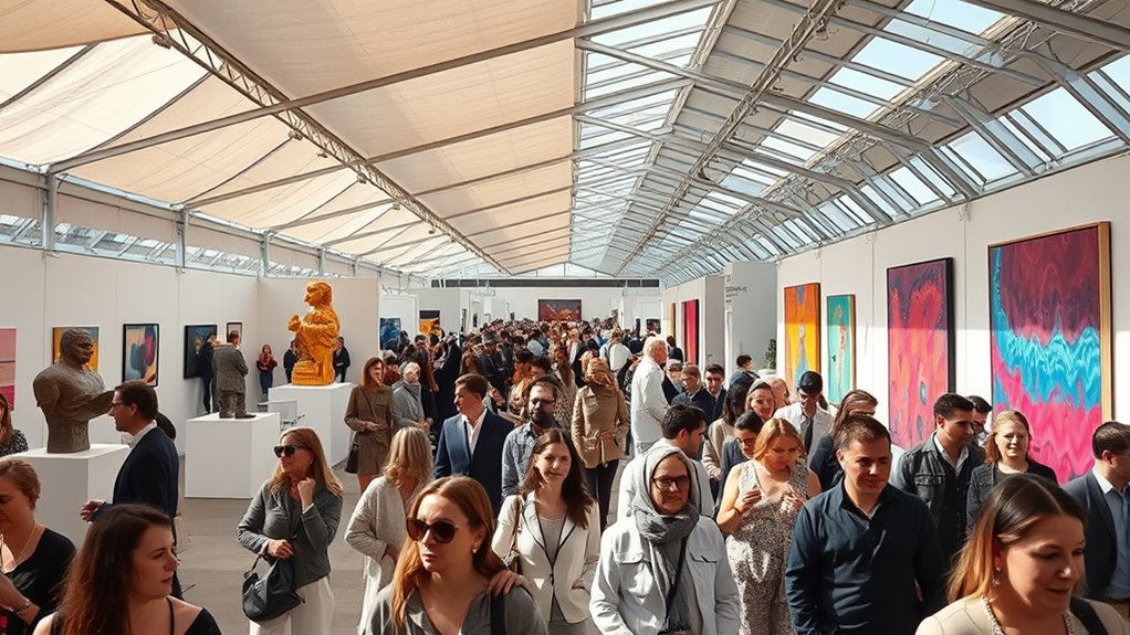 Every year, Frieze London transforms the art world by showcasing cutting-edge works that influence global trends. As you walk through the fair, you’re immediately immersed in a dynamic environment where emerging artists take center stage, pushing boundaries and redefining contemporary art. These fresh talents often debut groundbreaking pieces that challenge conventional notions, capturing the attention of collectors, curators, and critics alike. Their presence at Frieze signifies more than just new talent; it shapes the future of the art market itself. You’ll notice how galleries dedicated to emerging artists gain prominence, signaling a shift in market influence towards innovation and experimentation. This focus on new voices creates a ripple effect, encouraging collectors to seek out fresh talent and fueling a cycle where emerging artists gain visibility and credibility.