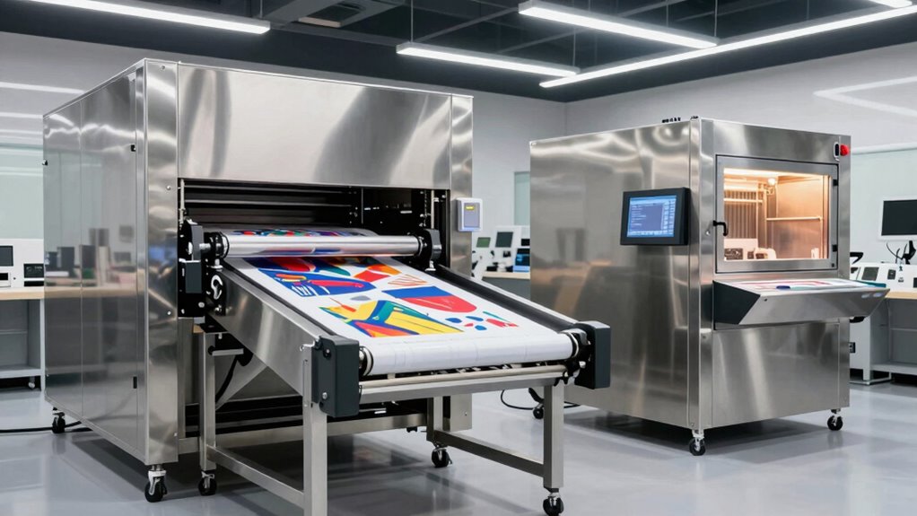 Think of a conveyor dryer as a tailor-made suit—designed with your specific needs in mind. Yes, many models now offer customizable options, from adjustable temperature zones to conveyor speeds and belt sizes. I’ve seen shops tweak dryers to suit everything from delicate fabrics to heavyweight textiles. This flexibility helps me guarantee my prints are perfect every time, making the dryer a true extension of my creative process.