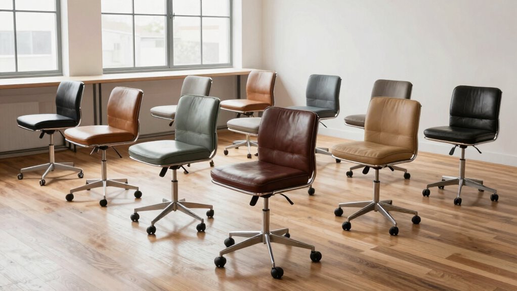 Choosing the right casters is essential for ensuring smooth and effortless movement around your workspace. I look for high-quality, smooth-rolling casters that suit my flooring type to prevent damage and make movement easy. Durable materials like nylon or polyurethane are my go-to because they support significant weight and stand up to frequent use. Swivel casters that rotate 360 degrees give me maximum flexibility, letting me navigate my drafting or studio area with ease. I also prioritize casters with lockable or brake mechanisms to keep the stool steady during precise tasks or long periods of work. Additionally, floor-friendly casters that minimize noise and scratches are especially important in shared or sensitive environments, helping maintain a quiet, damage-free workspace.