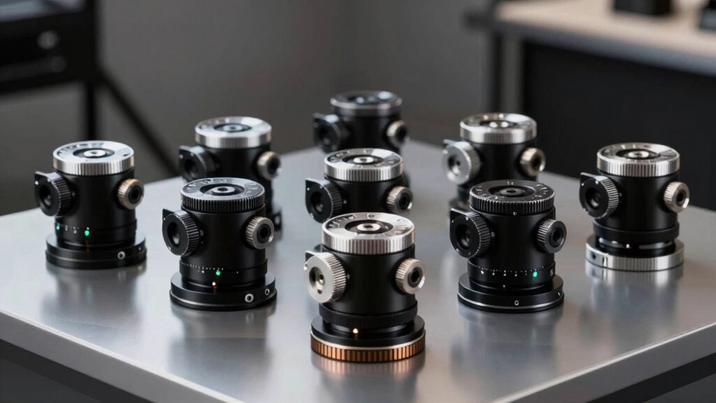 Achieving precise focus control and quick response times is essential for smooth filmmaking, especially during dynamic scenes. Higher control precision allows for finer adjustments, resulting in smoother focus transitions. Look for systems with calibrated gear rings, like 0.8 modules, to guarantee consistent manual operation. Fast response times—under 100 milliseconds—are vital for real-time focus pulls, enabling you to adapt instantly during shots. High-torque, brushless motors improve both speed and accuracy, especially when working with larger lenses. Digital or wireless follow focus systems with intuitive interfaces can streamline your workflow, making focus adjustments seamless and swift. The combination of precision and speed ensures you maintain cinematic quality, even in fast-paced or unpredictable shooting environments.