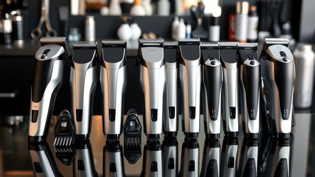 If you’re searching for the 13 best hair clippers to get that perfect cut like a pro, I’ve got you covered. I’ve explored top models known for powerful motors, versatile attachments, and easy handling—like Wahl’s professional series and waterproof trimmers. Whether you want cordless convenience or a complete grooming kit, these tools are backed by barbers’ recommendations. Keep going and I’ll show you which options stand out and how to choose the best one for your needs.