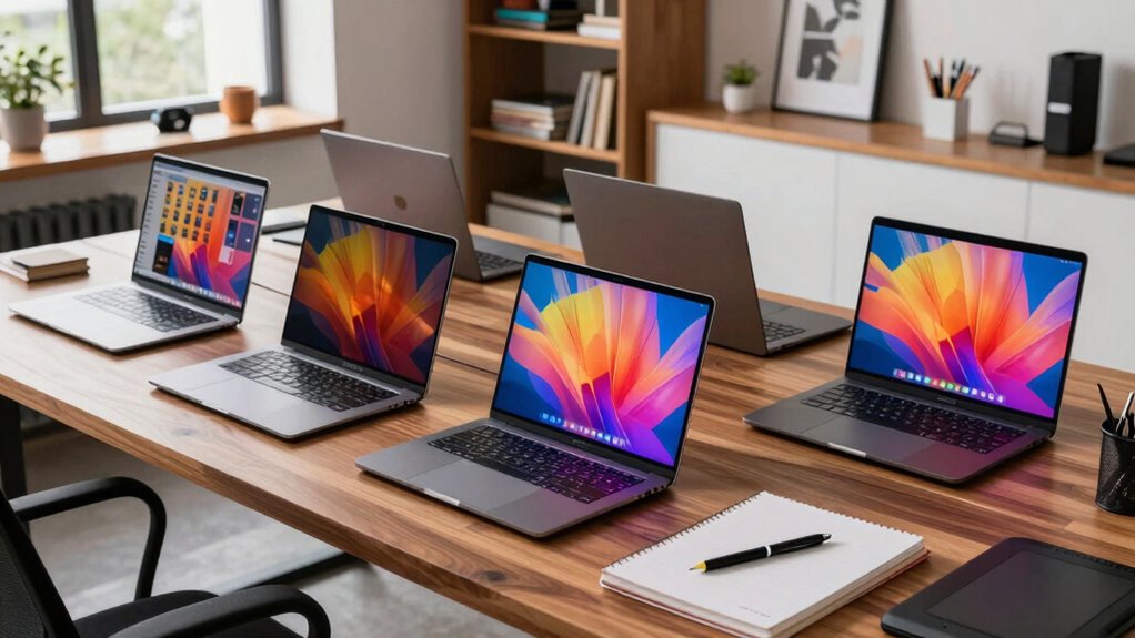 When choosing the best laptops for graphic design and illustration in 2026, I look for powerful processors like Intel i7 or AMD Ryzen 9, paired with at least 16GB of RAM and fast SSD storage. A high-res, color-accurate display with wide gamuts like DCI-P3 is essential, along with touch and stylus support for precise work. Durability, portability, and versatile connectivity matter too. If you want to discover my top picks and detailed tips, stay tuned to find out more.