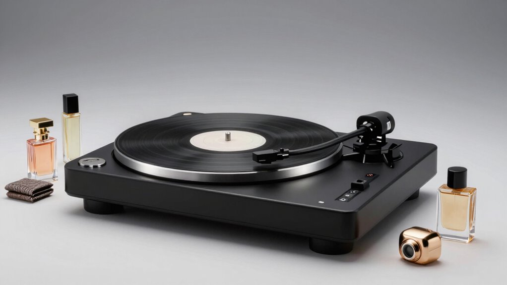 Have you ever faced a situation where your turntable suddenly lost power right during a essential shot? Power supply flexibility is indispensable for avoiding those frustrating moments. Look for turntables with options like USB charging, rechargeable batteries, or AC adapters. These options let you work in various locations, whether outdoors or in areas without reliable outlets. Dual power modes, combining wired and wireless operation, boost portability and convenience, ensuring uninterrupted shooting. Devices offering multiple power sources reduce the risk of sudden shutdowns during critical times, maintaining smooth operation. Compatibility with common power sources like USB cables, power banks, or batteries enhances versatility across different environments. Considering power supply flexibility means your turntable can adapt seamlessly to both studio setups and on-the-go shoots, minimizing disruptions and maximizing efficiency.