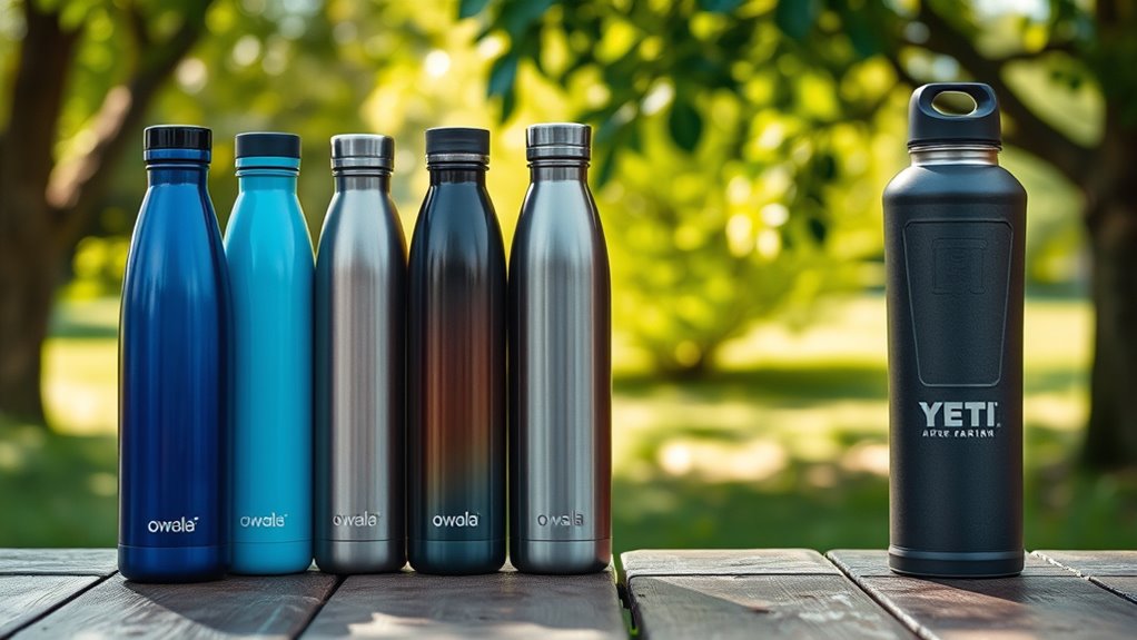 In 2025, I see Yeti bottles as the top choice for durability and long-lasting insulation, perfect for outdoor adventures. Owala bottles shine with lightweight designs, kid-friendly features, and versatile lids for everyday convenience. The Yeti Rambler stands out with rugged construction and leakproof caps, while Owala offers stylish, portable options with varying capacities. Want to discover which one fits your lifestyle best? Keep exploring to find out more.
