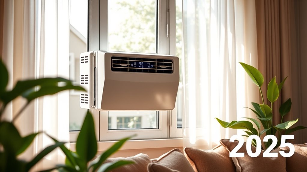 If you’re looking for the 15 best window air conditioners for 2025, I recommend considering a mix of small, smart, and U-shaped models based on your room size and preferences. Brands like Amazon Basics, Midea, GE, and LG offer reliable options with features like Wi-Fi control, quiet operation, and easy installation. Whether you want basic cooling or advanced tech, there’s something for everyone—stay tuned to explore top choices suited for your needs.